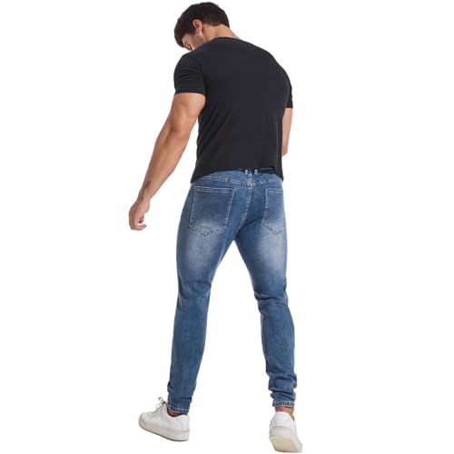 LZLER Mens Skinny Jeans Slim Fit Stretch Jeans Tapered Leg Ripped Elastic Waist Jean Denim Pants 6