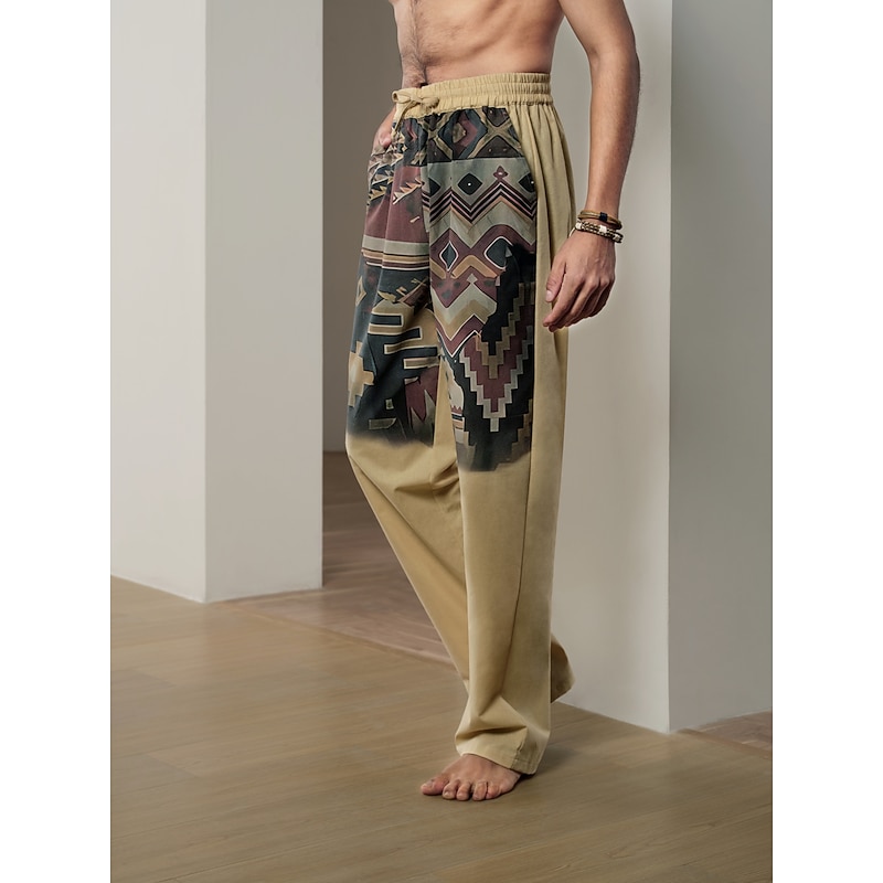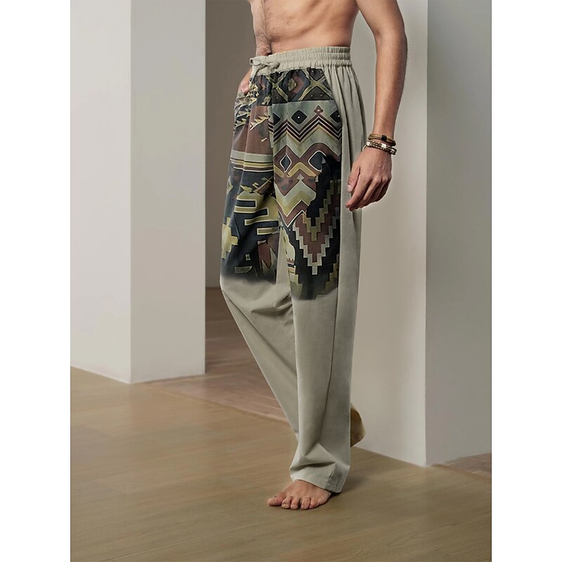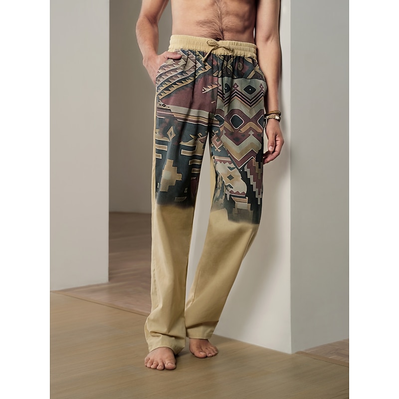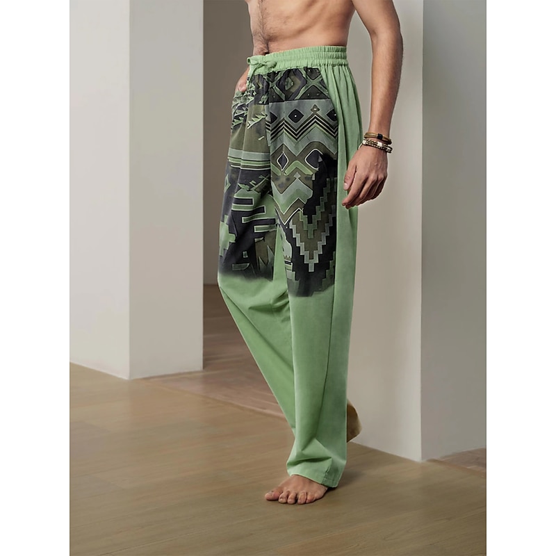 Men's Geometic Ethnic Linen Pants Beach Pants Mid Waist Streetwear Hawaiian Designer Casual Daily Holiday Drawstring Elastic Waist 3D Print Spring & Summer 3D Print Yellow Blue Green
