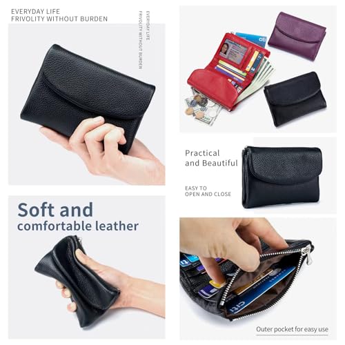 More information about Unisex Pebble Leather Wallet, Multicolor Genuine Leather Short Wallets for Women & Men, Small Full Grain Coin Purse with Credit Card Holder for Coins and Cards (#1)