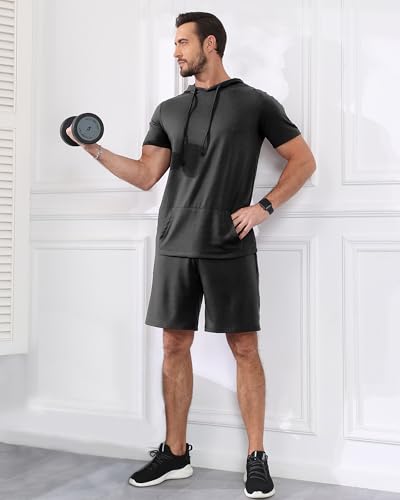 Aiyino Men's Tracksuit 2 Piece Hooded Athletic Sweatsuit Short Sleeve Casual Sports Hoodie Shorts Set 2