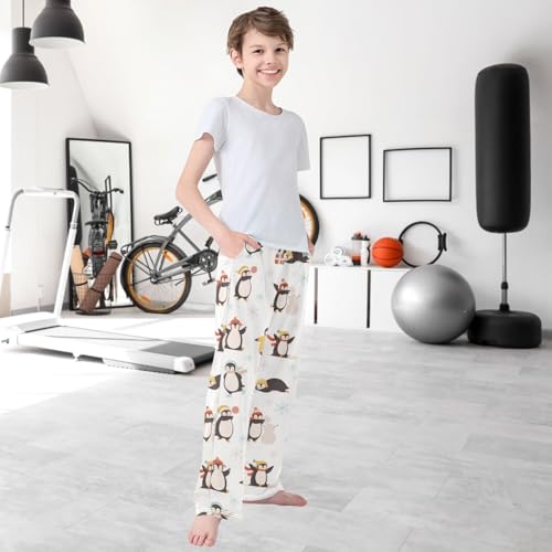 Boy's Pants Funny Penguin Winter Jogger Pants Elastic Waist Long Bottoms Trousers with Pockets 6-14 Years 6