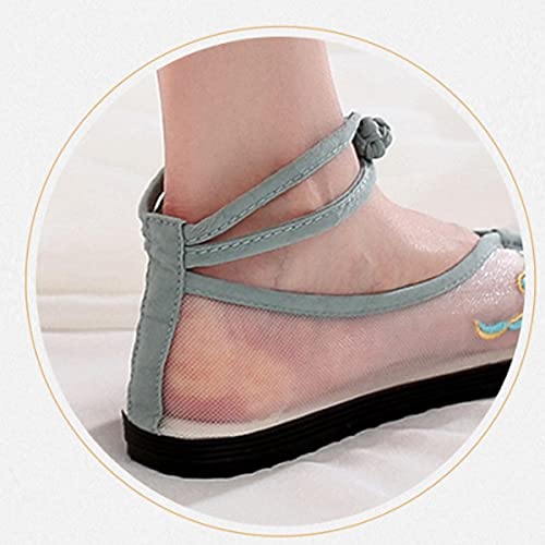 Flat Bottom Retro Embroidered Shoes Women 2025 New Breathable Shallow Mouth Women's Shoes Ethnic Style Cloth Shoes Women (Color : C Size : Code 35) (C Code 37) 4