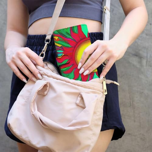 PU Leather Wallet with 12 Card Slots, Women Men Portable Wallets Multi-Functional Purse for Work, Travel, Trippy Sun Art Elegant Large Capacity Wallet 6