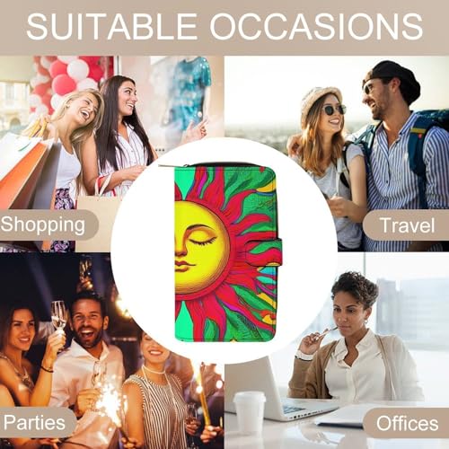 More information about PU Leather Wallet with 12 Card Slots, Women Men Portable Wallets Multi-Functional Purse for Work, Travel, Trippy Sun Art Elegant Large Capacity Wallet