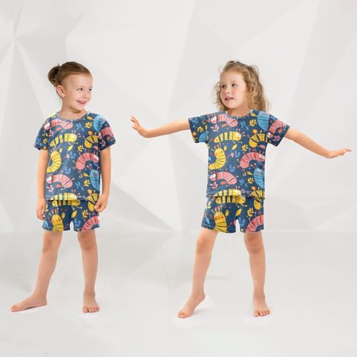 ALAZA Cute Caterpillar Pajamas Set Short Sleeve Cotton Sleepwear Summer Pjs 2 Piece 5-14Y 1