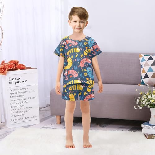 ALAZA Cute Caterpillar Pajamas Set Short Sleeve Cotton Sleepwear Summer Pjs 2 Piece 5-14Y 5