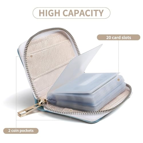 • Large Capacity: Despite its compact and lightweight size, this credit card holder has a powerful storage function. It contains 20 independent slots for easily storing cards and has two coin pockets to meet the needs of daily travel