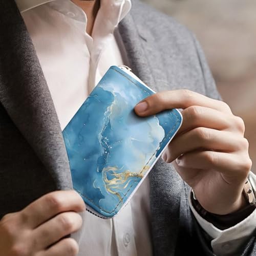 Blue Gold Marble Small Business Credit Card Holder Wallet with 20 Card Slots Case Coin Purse Pouch 6