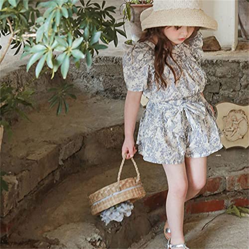 Toddler Girls Shirts Floral Print Short Sleeve Blouses Summer Crew Neck Tees for Kids Child (Purple, 2-3 Years)