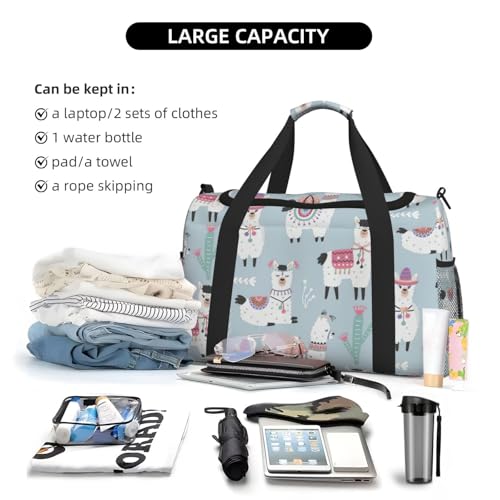 • Measuring 50x33x26 cm (19.7x13x10.2 inches), this Cute alpaca Print travel duffle bag offers ample space to accommodate your clothing, electronics, and daily essentials. for long trips, weekend getaways, or even as an everyday tote.