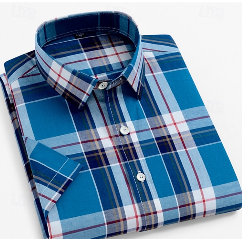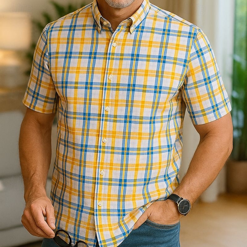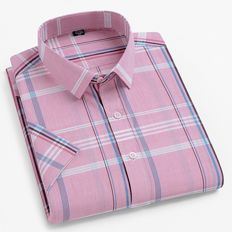 More information about Men's Dress Shirt Casual Shirt Plaid Check Shirt Graphic Prints Square Neck Light Yellow Light Pink Black / Gray White / Green Sea Blue Casual Daily Short Sleeve collared shirts Clothing Apparel