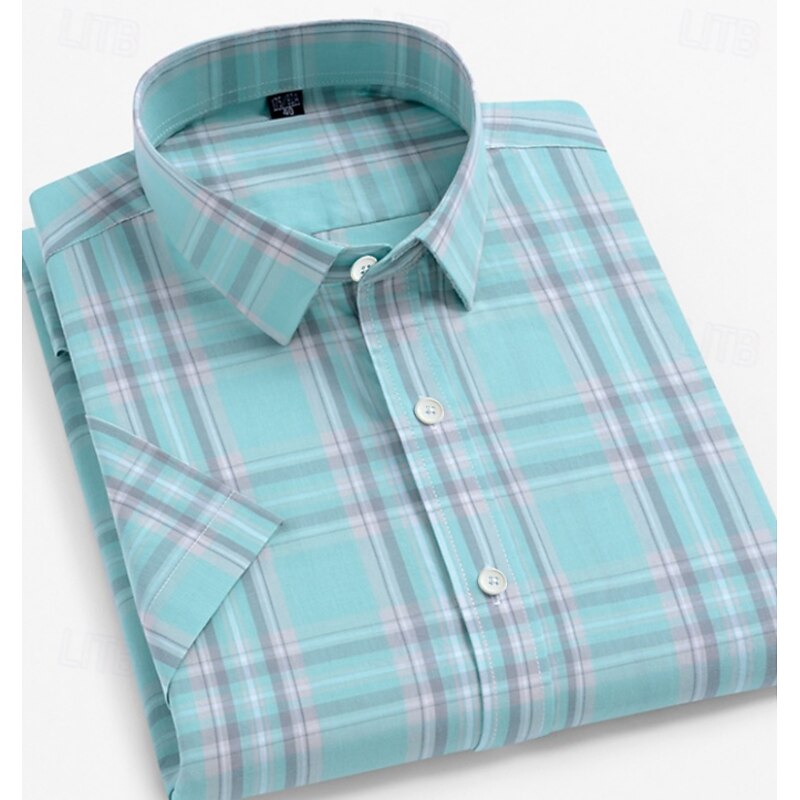 Men's Dress Shirt Casual Shirt Plaid  Check Shirt  Graphic Prints Square Neck Light Yellow Light Pink Black / Gray White / Green Sea Blue Casual Daily Short Sleeve collared shirts Clothing Apparel 1