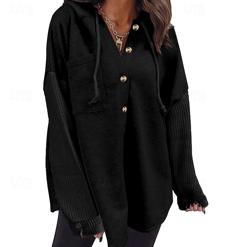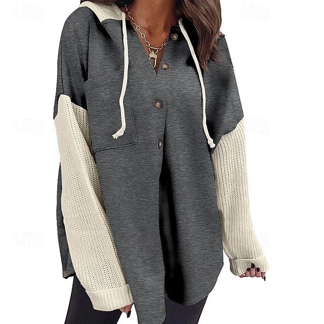 More information about Women's Shirt Jacket Comfortable Patchwork Vintage Simple Classic Color Block School Outdoor Office Work Cardigan Regular Hoodie Loose Fit Long Sleeve Outerwear Light Pink Black Camel Spring Fall