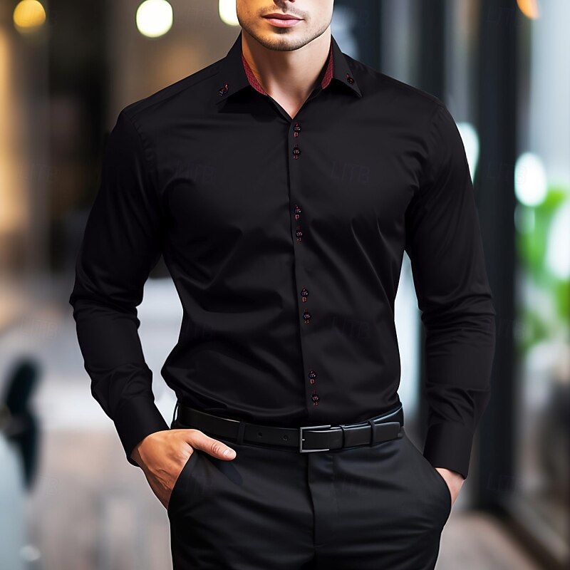 Men's Dress Shirt Plain Wedding Work Light Blue Black White Long Sleeve Spread Collar Summer Spring Clothing Apparel 1