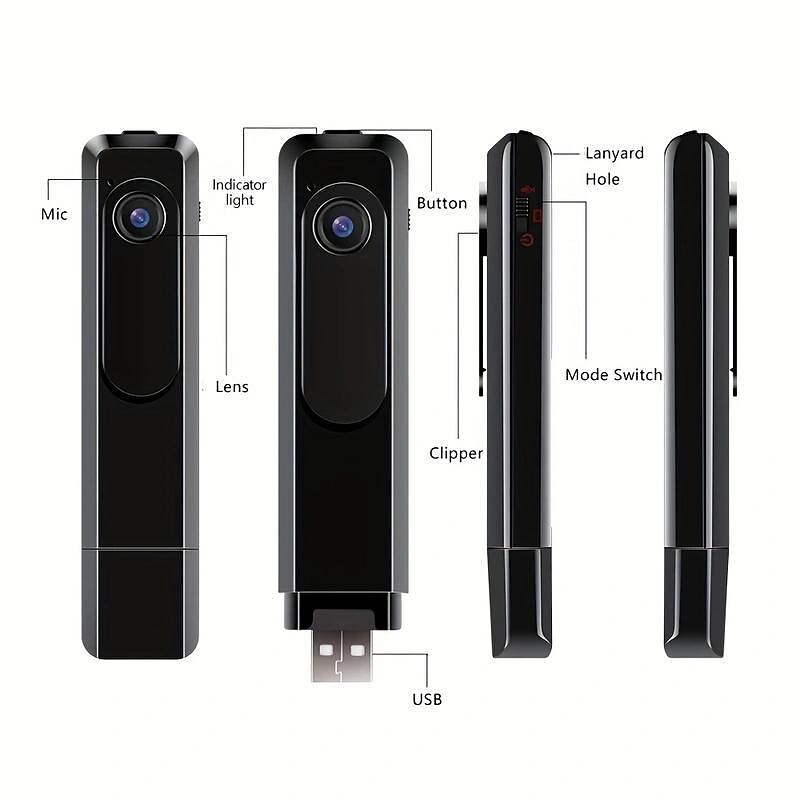 Highlights - High resolution: With a video resolution of 1920×1080 pixels and a frame rate of 30fps, this mini camera offers exceptional clarity and allows you to capture and view every detail in your videos. - Portable and discreet: Designed with a slim and lightweight body, this camera can be easily attached to your neck, pocket, or bag for convenient and discreet video recording. It is ideal for business meetings, travel, and various other occasions. - Long battery life: Equipped with a rechargeable battery, this small camera can provide up to 5 hours of video recording on a single charge. Additionally, it supports continuous recording while being charged, ensuring that you never miss any important moments. - User-friendly: This portable camera features two functions - video and audio (no photo). It is incredibly easy to use, simply switch the mode and press the "OK button" once to start recording. Anyone can quickly learn to use it without any hassle. - Clear night vision: The camera's night vision automatically activates in low-light conditions, ensuring that you can capture clear and visible video footage even in the dark. You can rely on this camera for uninterrupted video recording day and night.