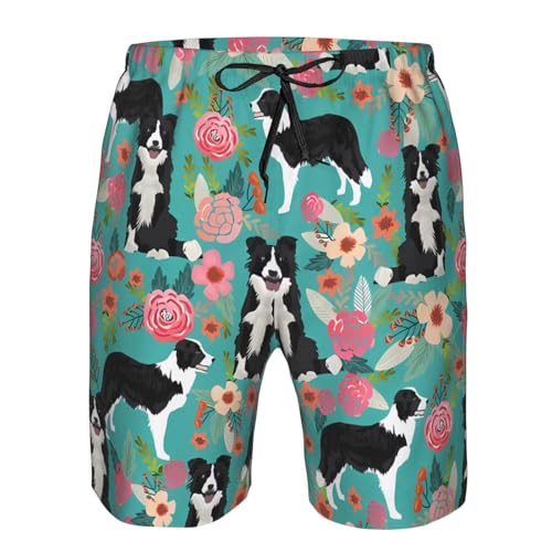 • Border Collie Florals Printed Swim Trunks for Men: These surf shorts can be worn in and out of the water during summer vacation. Our Men's Sweat Shorts Swimsuits using dye-sublimation technology that allows graphics lifelike, vibrant colors and comfy material will bring you a cool summer