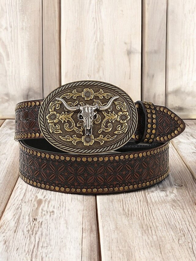 ₪72 - Men's Western Faux Leather Belt with Engraved Floral Design and Bull Skull Buckle – Vintage-Style Cowboy Belt for Rodeo and Casual Wear 2025. Shop for cheap Accessories For Men online? Buy at lightinthebox.com on sale today!