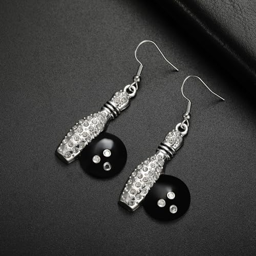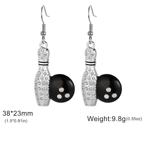 UNIFT Bowling Earrings for Women Alloy Chic Fashion Sports Style Bowling Ball with Diamonds Dangle Earrings Bowling Ball Lover Jewelry Gift, silver 7