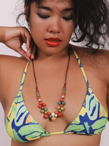 MINACHI Hippie Boho Colorful Ceramic Round Beads Strand Necklace, Bohemian Fashion Statement Jewelry Gift for Women 1