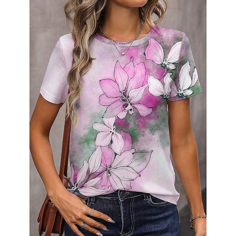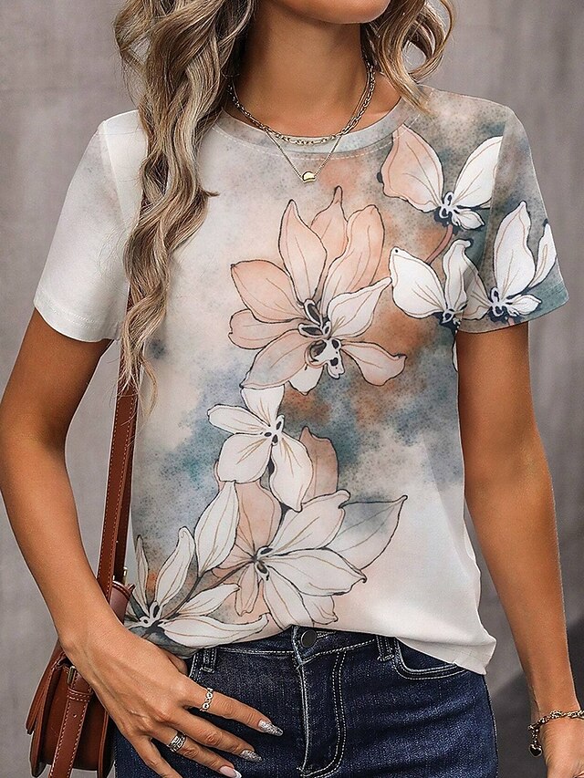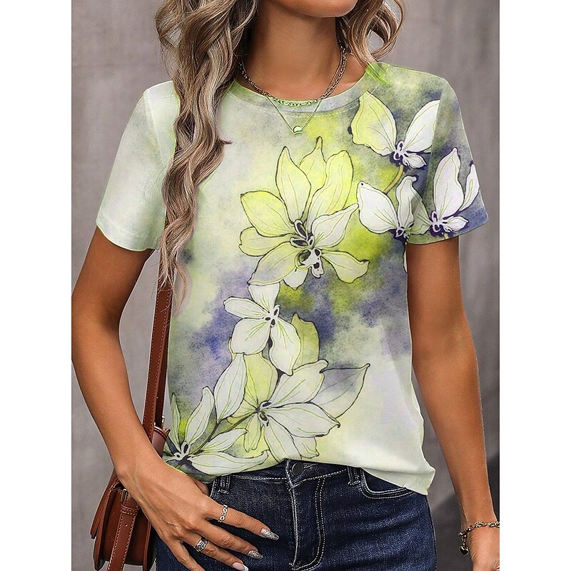More information about Women's T Shirt Floral Graphic Vintage Classic Casual Short Sleeve Crew Neck Regular Tops Daily Weekend Print Yellow Blue Purple Green Gray Summer