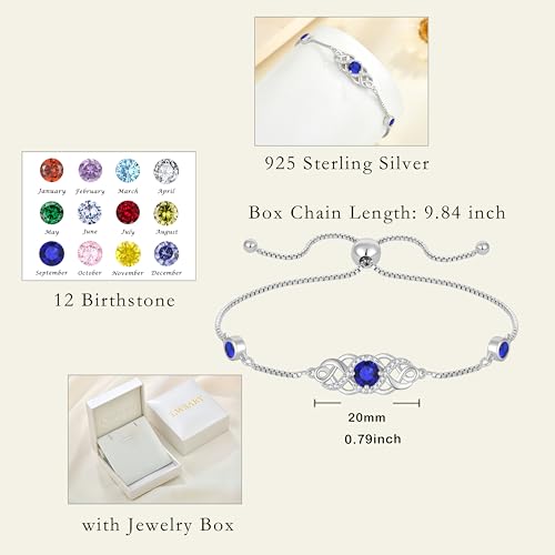 HOT ! Infinity Celtic Knot Bracelet 925 Sterling Silver Birthstone Bracelet Irish Jewelry for Women