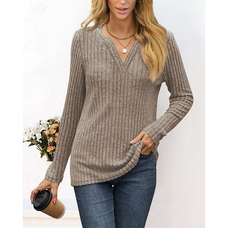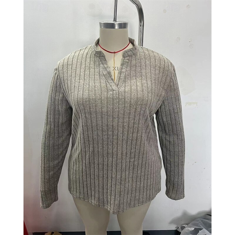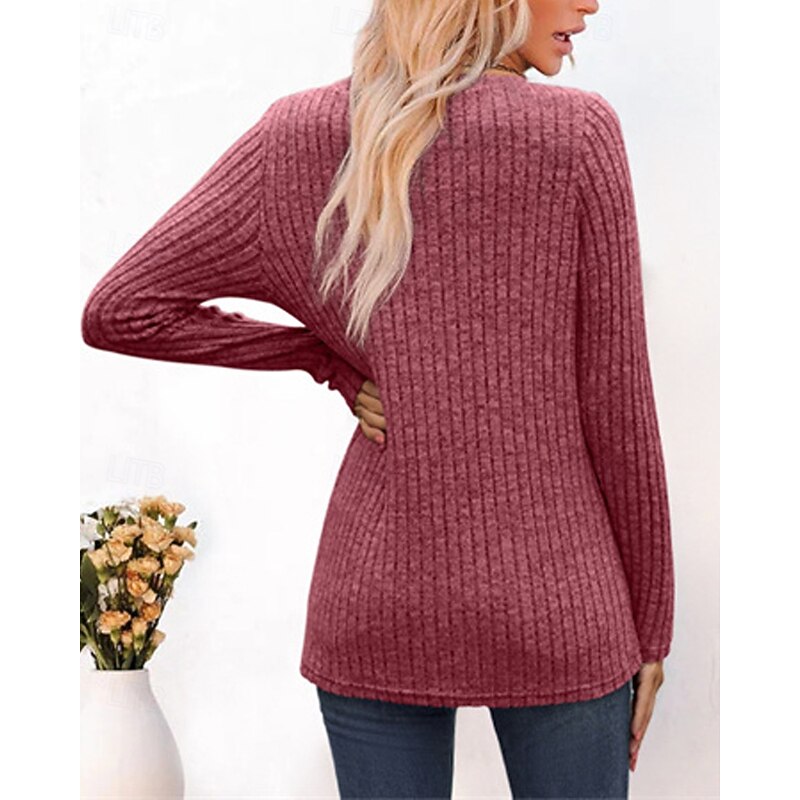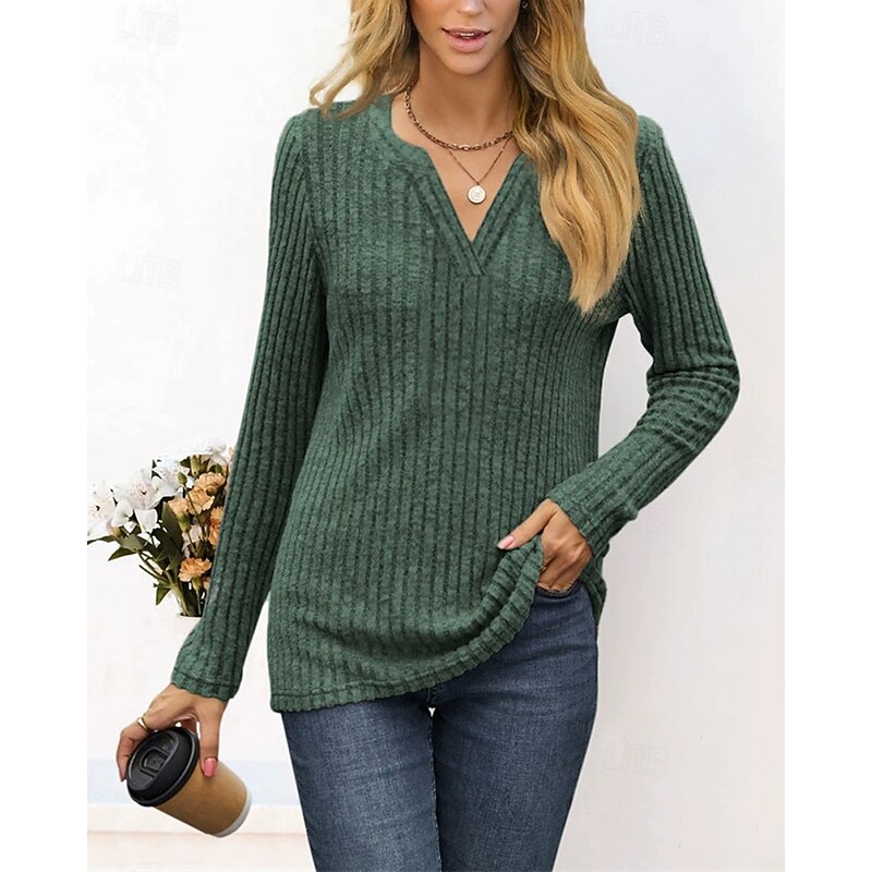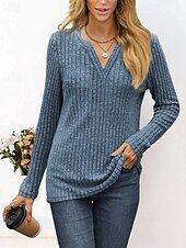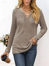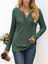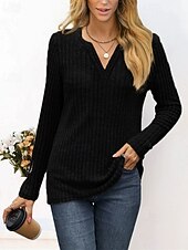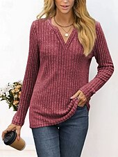 More information about Women's Sweater Fashion Solid Color Ribbed V Neck Knitted Long Sleeve Regular Tops Knit Holiday Going out Weekend Black Wine Winter