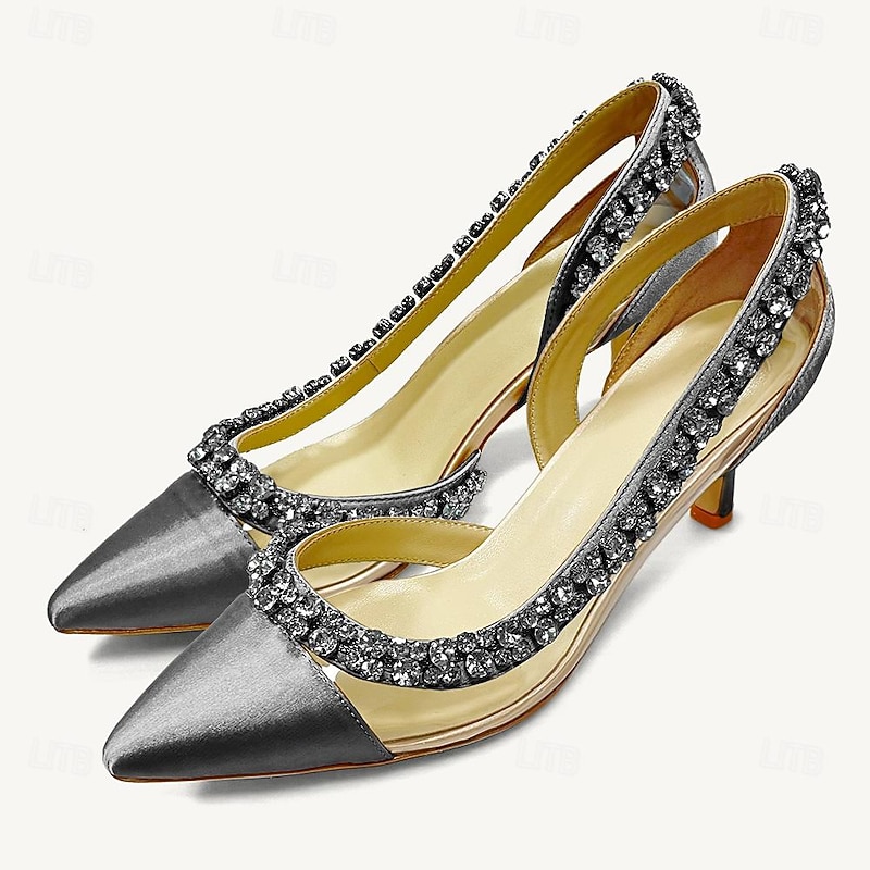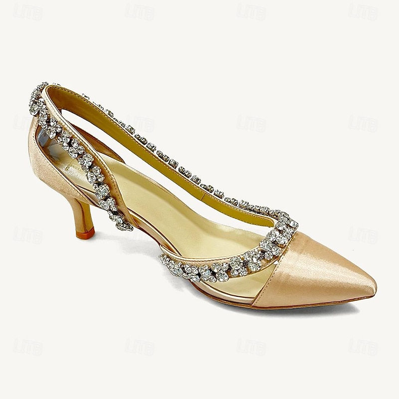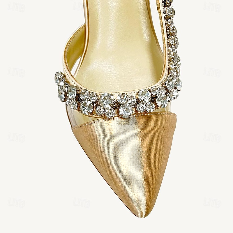 Women Pointed Toe Heels with Crystal Embellishment - Elegant Wedding and Evening Shoes