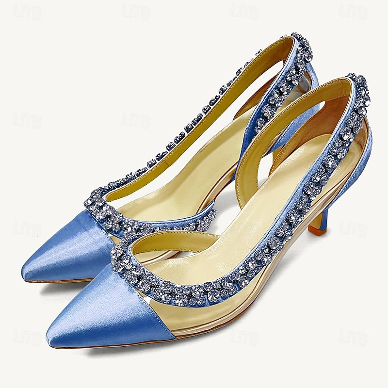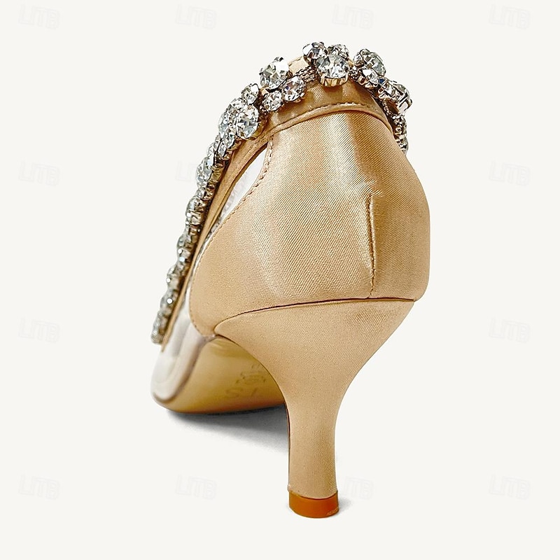Perfect for weddings, parties, and other formal gatherings, these shoes seamlessly blend style with sophistication. The combination of satin and crystal embellishments makes them a stunning accessory for any bride or party attendee looking to make a statement.