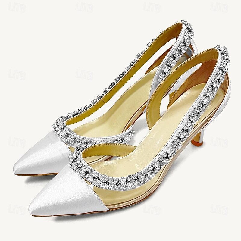 These elegant bridal shoes are crafted from luxurious satin fabric, offering a refined and sophisticated appearance perfect for any formal occasion. The pointed toe and kitten heel design provide a classic and timeless silhouette, ensuring both style and comfort for the wearer.