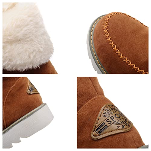 Women's Classic Non-Slip Ankle Snow Boots,Women's Cashmere Waterproof Non-Slip Ankle Snow Boot,Winter Outdoor Warm Fur Lined Slip-on Flat Boots. (10.5 US, Brown) 6