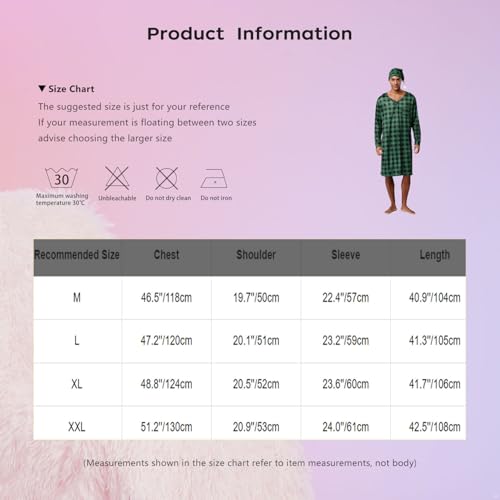 More information about ACSUSS Men Nightgown Plaid Printed Nightshirt with Sleeping Cap Mid-length V-neck Nightdress Red XX-Large