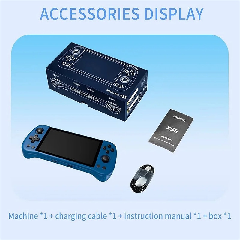 Powkiddy X55 Handheld Game Console with Built-in Games IPS RGB Screen 5.5-Inch (256G 30000 Games), Perfect Christmas Birthday Party Gifts for Friends and 7