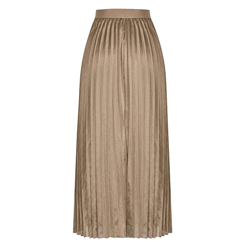 Women Satin Pleated Midi Skirts Elastic High Waisted Plus Size Boho Skirt Elegant Stretch A Line Long Dress 6