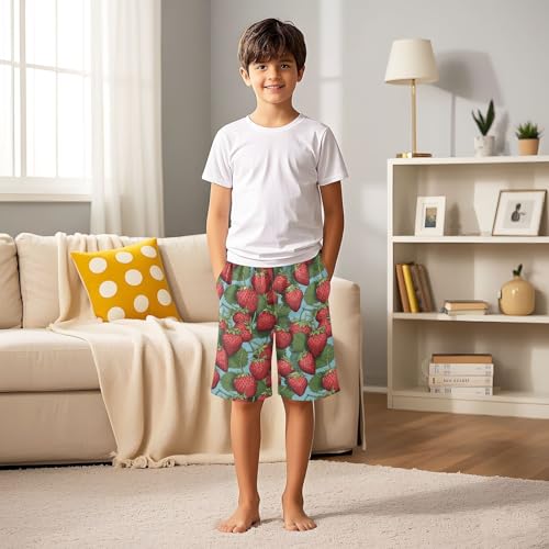 ALAZA Strawberry Leaves Blue Pajama Shorts Sleep Shorts Pant Lounge Pajama Bottoms Elastic Waist with Pockets 1