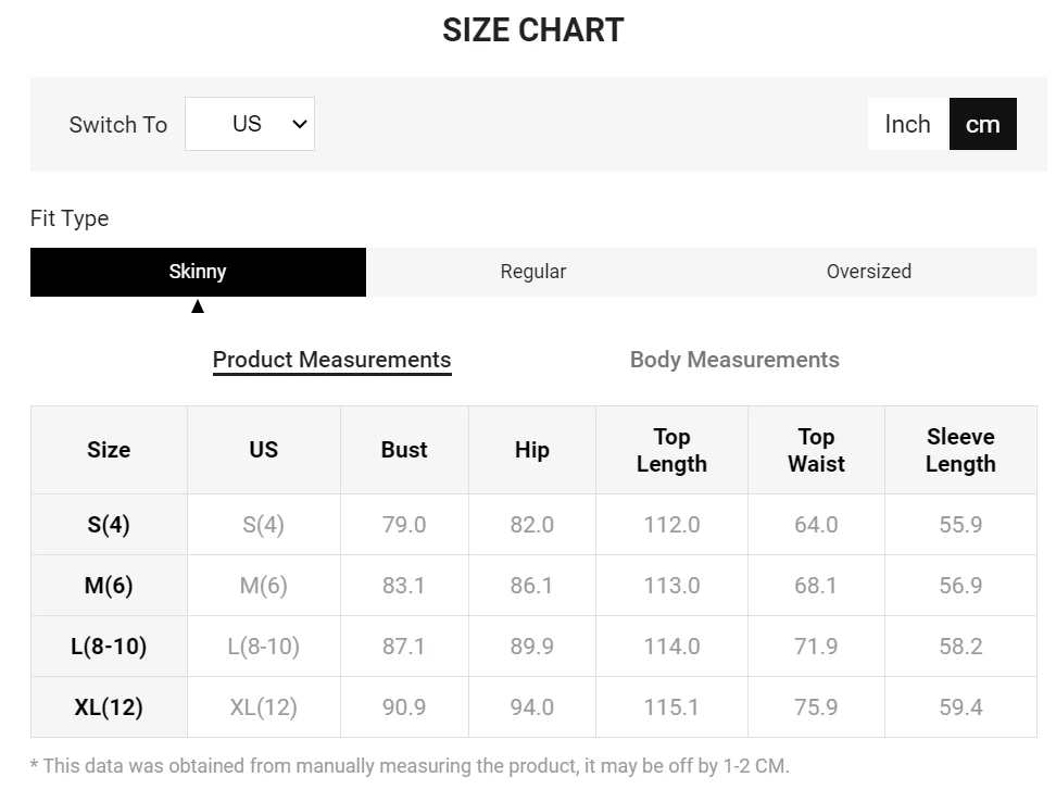 Note: There might be 2-3% difference according to manual measurement. Please check the measurement chart carefully before you buy the item.?