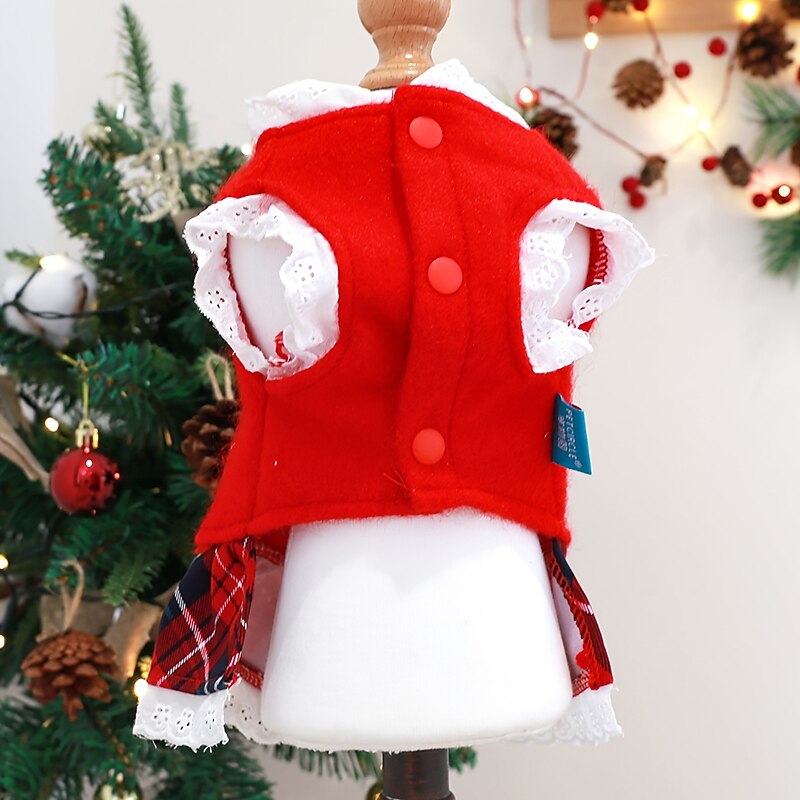 Dog Christmas Outfit Pet Circle Christmas Series Gingerbread Man Red Plaid Skirt Cute Outdoor Liveliness 1
