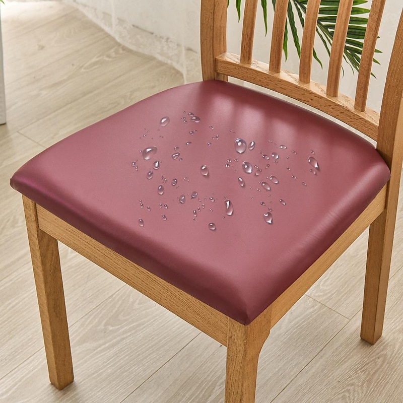 100% Waterproof Stretch Seat Covers for Dining Chair Slipcover Pu Leather Elastic For Dining Party Hotel Wedding Soft Washable 2