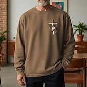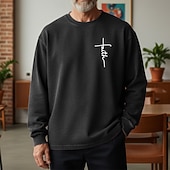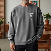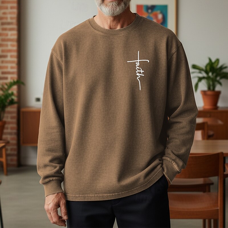 More information about Men's Sweatshirt Distressed Hoodie Apricot Black Pink Army Green Brown Crew Neck Letter Faith Print Daily Holiday Going out 100% Cotton Vintage Retro Casual Fall Winter Clothing Apparel Hoodies