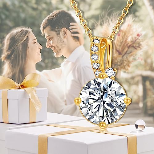 sought-after ! SISGEM 14k Gold Natural Diamond and 8 mm Created Moissanite Necklace for Women, Fine Jewelry Gifts for Her, 16-18 inch