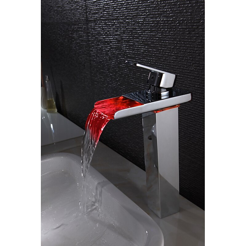 Bathroom Sink Faucet - Waterfall Chrome Centerset Single Handle One HoleBath Taps / Brass 9