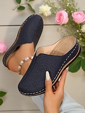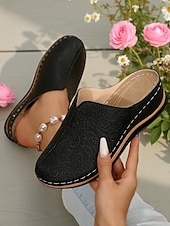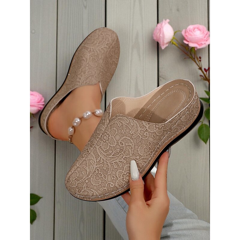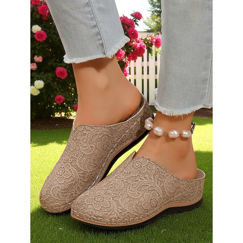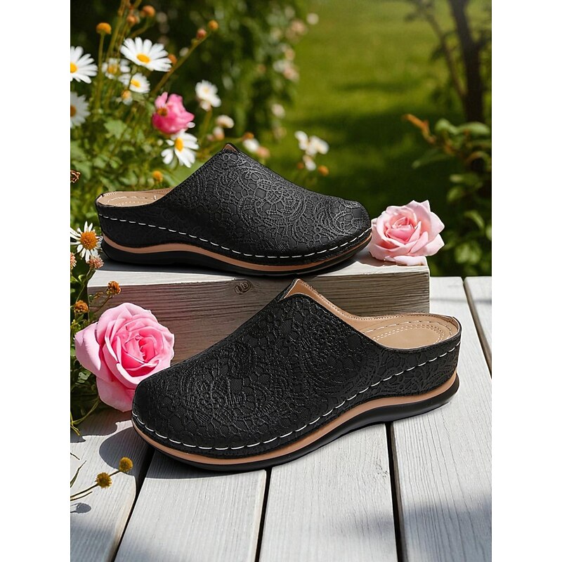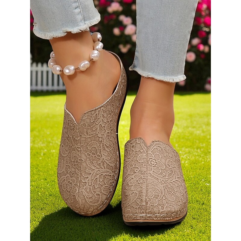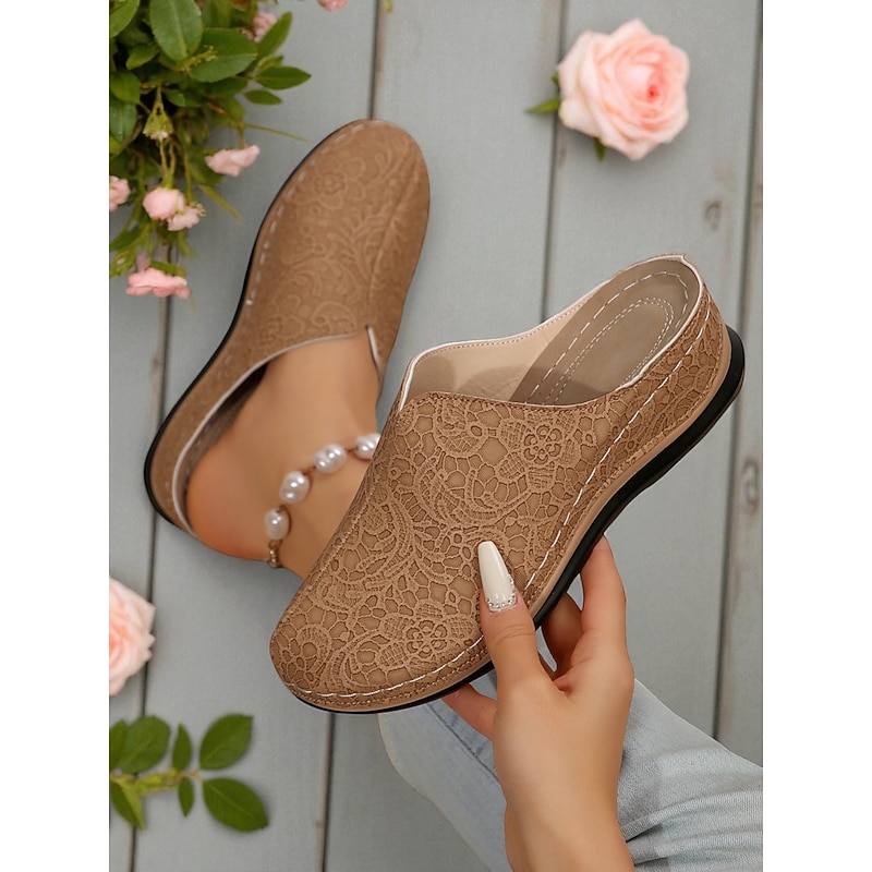 HOT ! Women's Faux Leather Slip-On Mules – Breathable Lace-Patterned Comfort Clogs for Gardening, Housewear and Casual Outfits