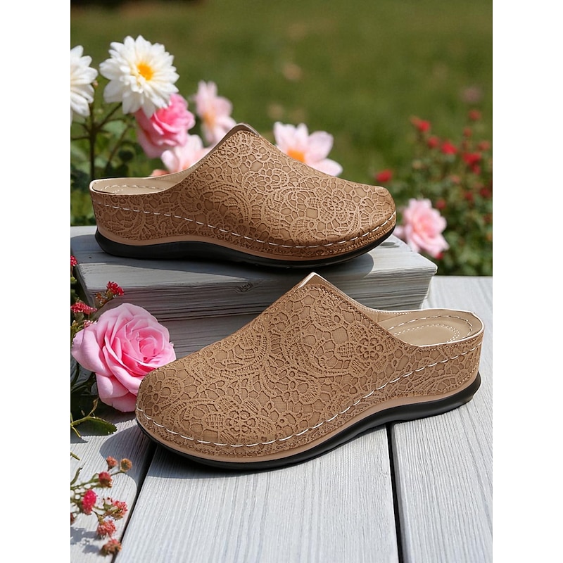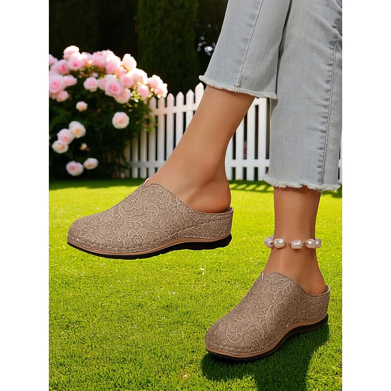 Women's Faux Leather Slip-On Mules – Breathable Lace-Patterned Comfort Clogs for Gardening, Housewear and Casual Outfits 21