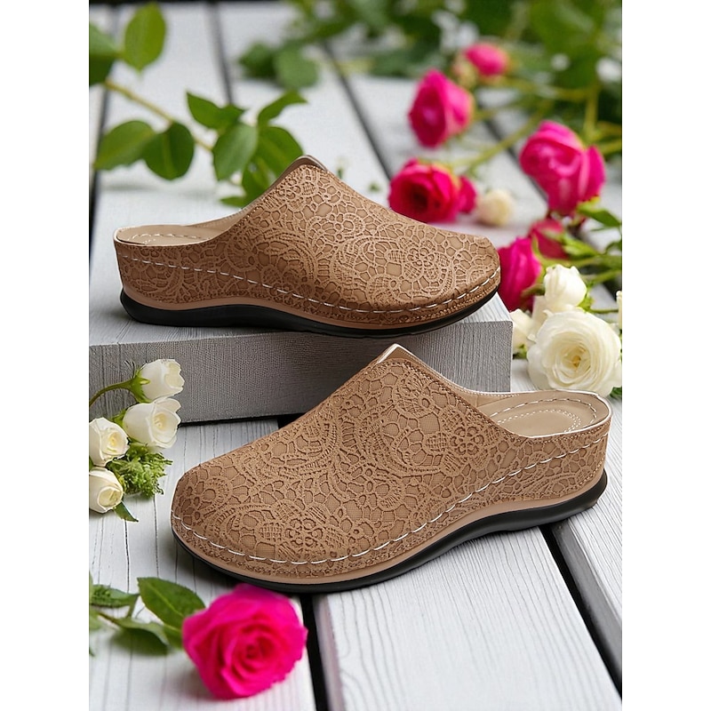 Women's Faux Leather Slip-On Mules – Breathable Lace-Patterned Comfort Clogs for Gardening, Housewear and Casual Outfits 20