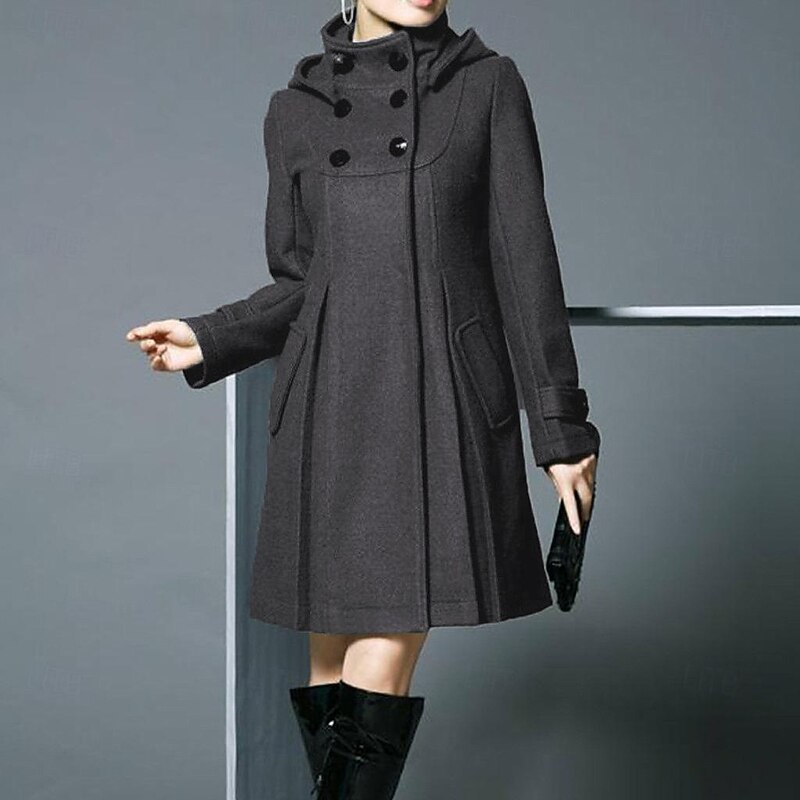 Women's Coat Cloak / Capes Winter Coat Long Overcoat Windproof Warm Pea Coat with Pockets Fall Trench Coat Casual Jacket Long Sleeve Green Black Dark Gray 9