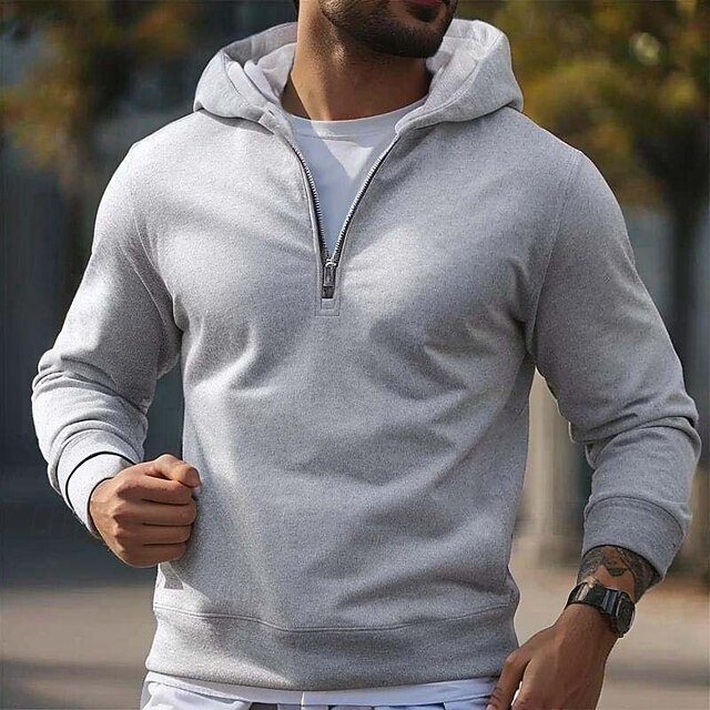 More information about Men's Hoodie Quarter Zip Hoodie Fleece Hoodie Black Gray Hooded Plain Zip Up Quarter Zip Sports & Outdoor Casual Daily Streetwear Cool Sportswear Fall & Winter Clothing Apparel Hoodies Sweatshirts