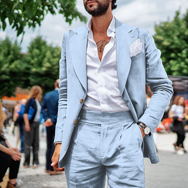 $116.99 - Men's Wedding Beach Linen Suits Peak Black Sky Blue Solid Colored Tailored Fit 2 Piece Single Breasted Two-buttons 2025. Shop for cheap Party Suits online? Buy at lightinthebox.com on sale today!