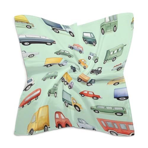 Colorful Trucks And Car Fashion Head Scarf for Women Silk Like Bandana Kerchief Satin Square Scarves Gifts 1