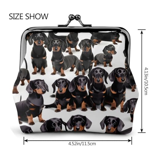 Dachshund Weiner Pet Dog print Women's leather kiss lock coin wallet Portable wallet for office and travel 1