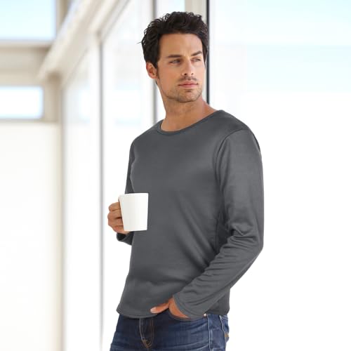 Patelai 3 Pack Thermal Underwear for Men Top Crew Neck Long Sleeve Shirt Fleece Lined Base Layer for Cold Weather