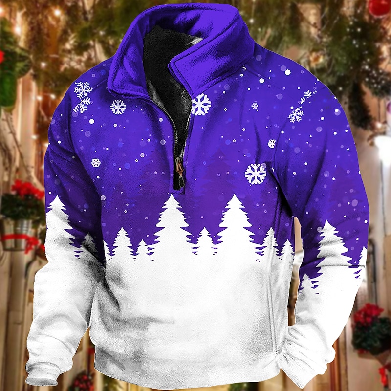 Men's Snowflake Christmas Scene Sweatshirts Sweatshirt Sweatshirt Pullover Quarter Zip Hoodie Long Sleeve Sweatshirt Stand Collar Fashion Cool Daily 3D Print Christmas Vacation Going out Print Spring 2